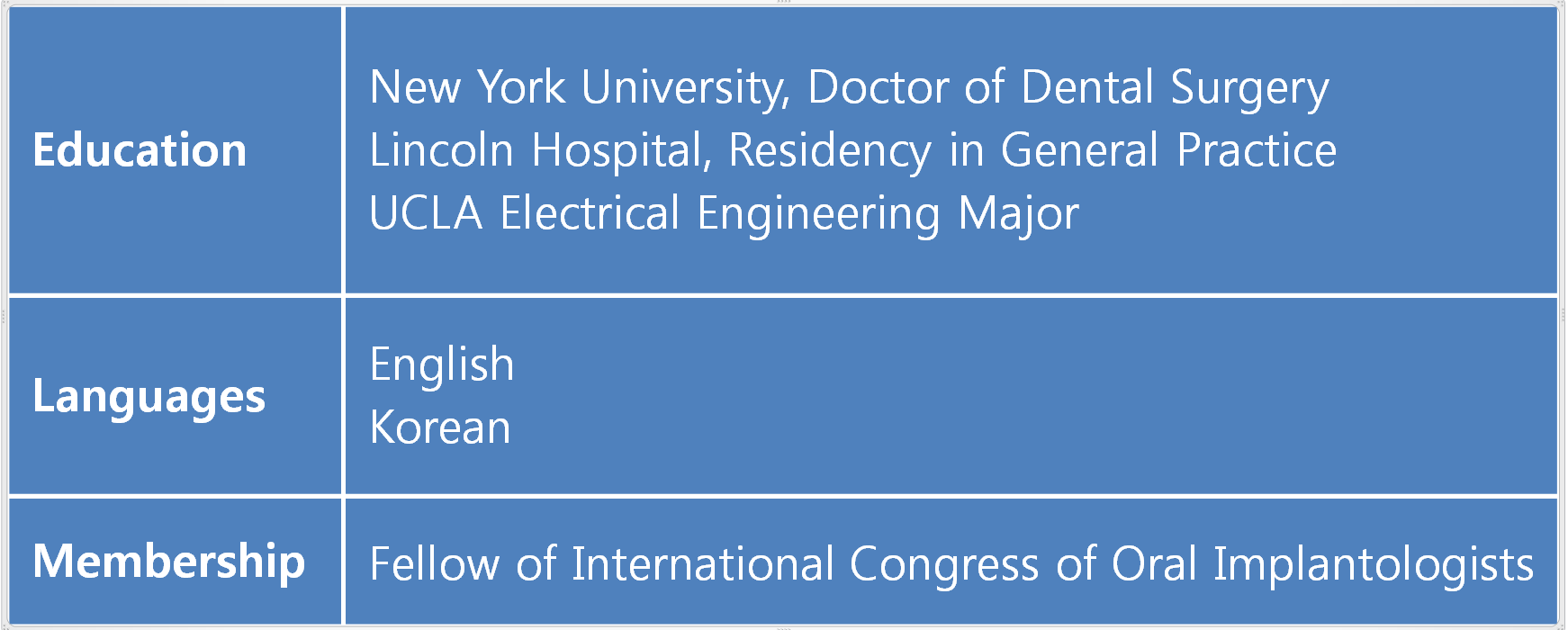 "I strive to provide the best possible dental solutions to every patients with care as of our family." - Dr. Hyo-Jin Kim